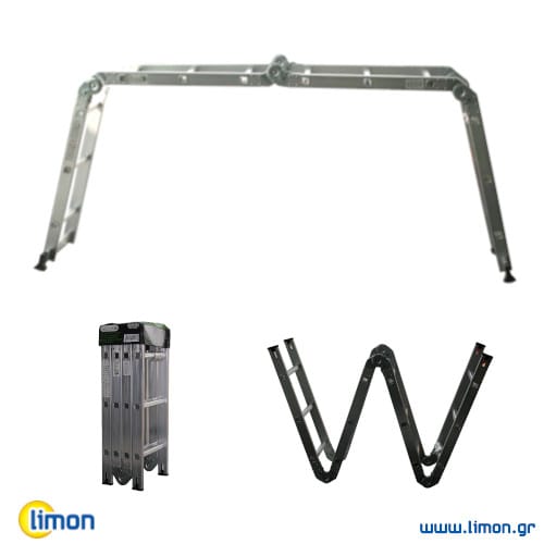 Πτυσσόμενη πολυμορφική σκάλα από αλουμίνιο υψηλής ποιότητας με 4 μέρη. Τα διαφορετικά σχήματα που μπορεί να πάρει την καθιστούν ιδανική σε κατασκευαστικές και επισκευαστικές δραστηριότητες, τοποθέτηση γυψοσανίδων, εγκαταστάσεις καλωδίων, αντικατάσταση εξωτερικού και εσωτερικού φωτισμού, υπηρεσίες βαφής, φυτοκομία, αποθήκευση κλπ